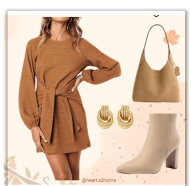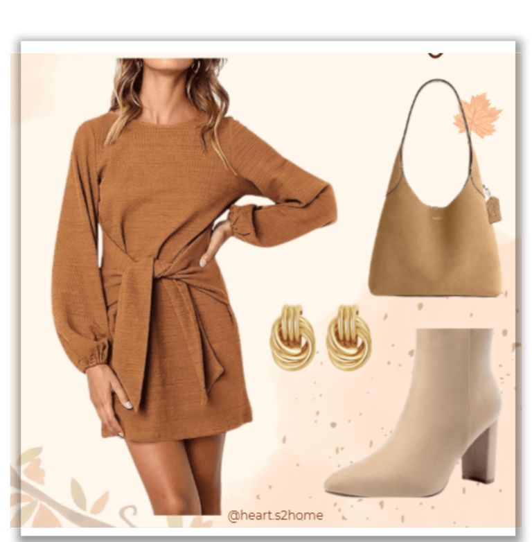 This warm-toned knit dress is the definition of fall elegance, it’s soft, flattering, and perfect for Thanksgiving dinner. The tie-waist detail adds shape while keeping things comfortable (ideal for that second slice of pie!).